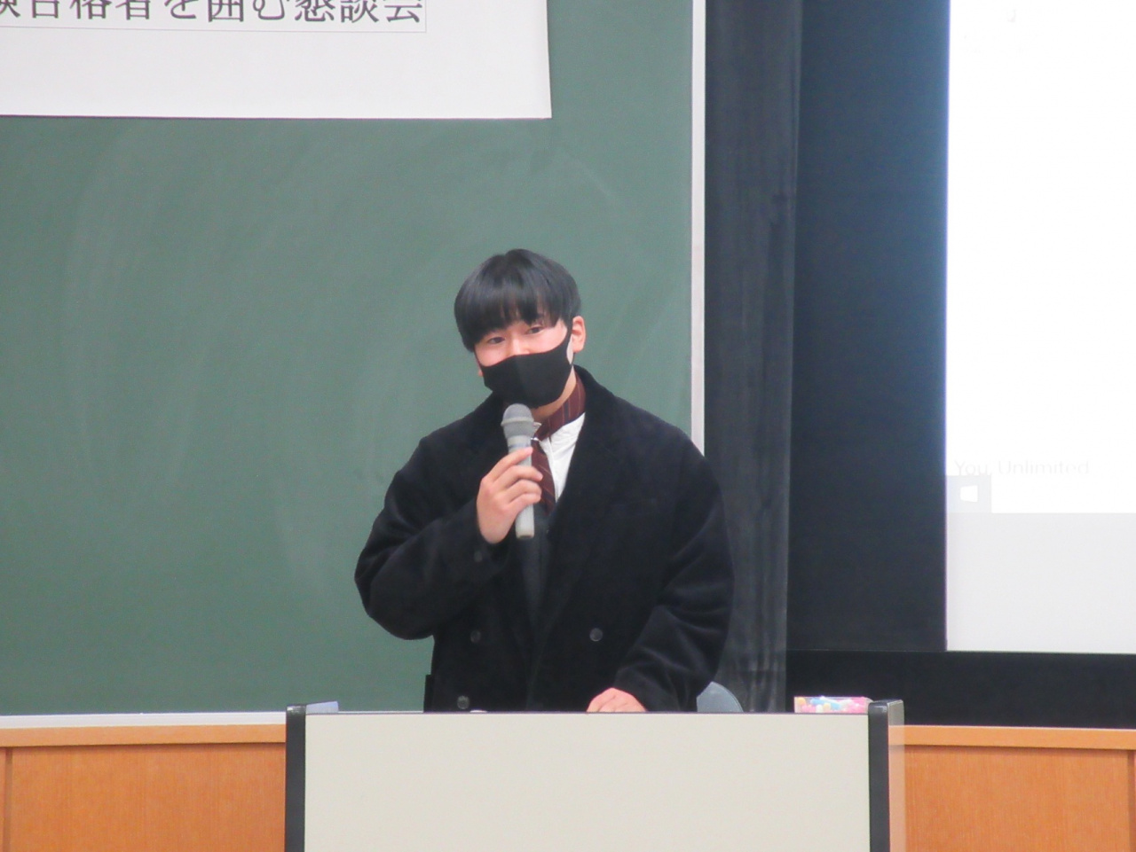 龍谷大学矯正・保護課程では、毎年度、学生のキャリア支援の一環として、本学の在学生・卒業生で、国家公務員(法務教官、刑務官、保護観察官)採用試験に合格した方や本学出身の現職の方を講師にお招きし、本課程を受講している学生らに対して、自身の合格体験談や現在の仕事内容などをお話しいただく機会として「国家公務員採用試験合格者を囲む懇談会」を開催しています。今年度もこの懇談会を11月26日(金)に開催しました。当日は約50名の学生が参加し、講師の話(アドバイス)に熱心に耳を傾けていました。懇談会終了後も残って講師に熱心に質問をする学生がいました。