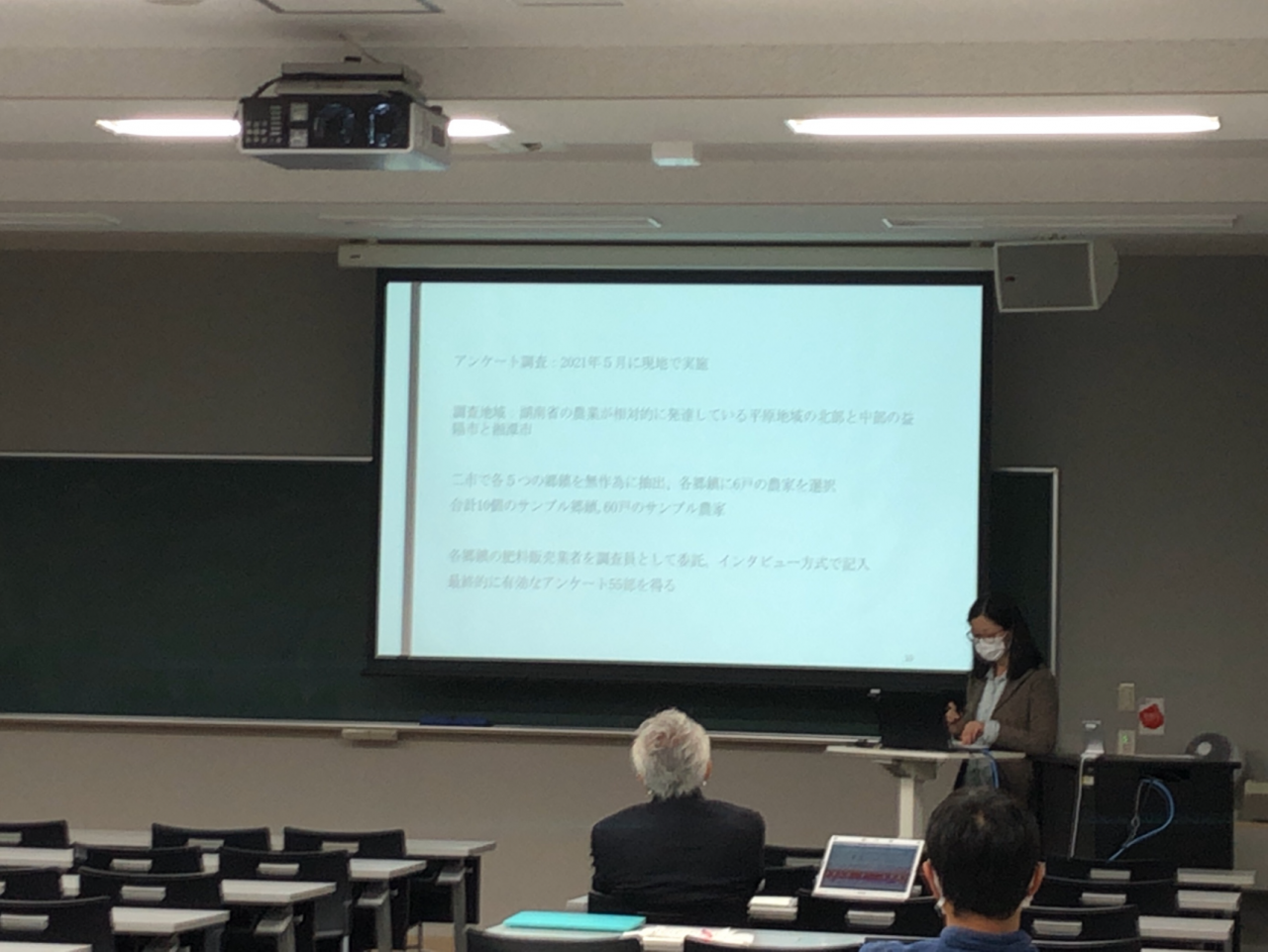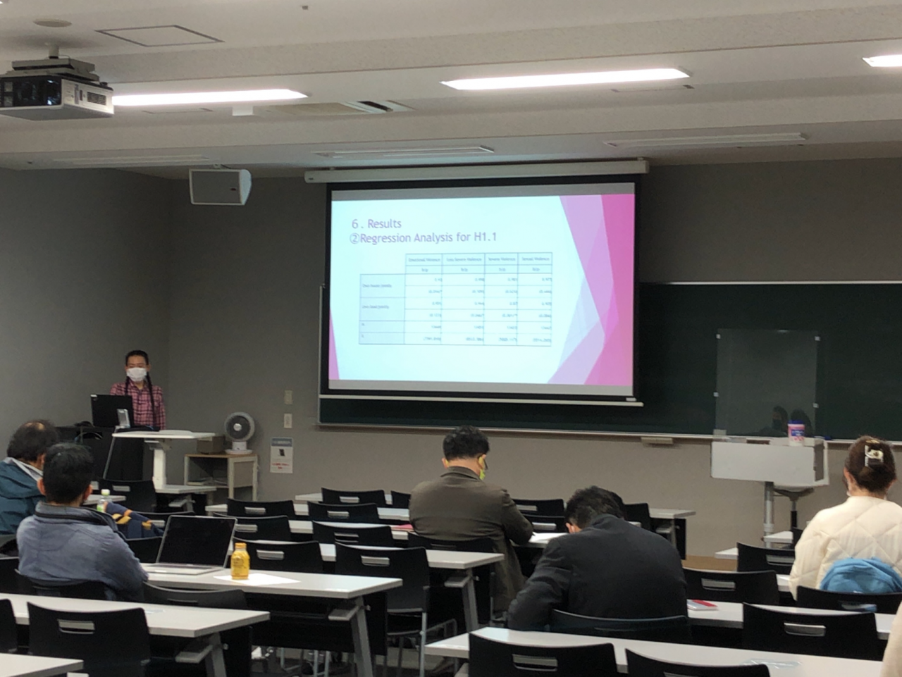 「合同演習」は、ゼミを横断して行われる研究報告・発表会で、年2回(春・秋)、大学院生全員が参加して開催しています。今回は三密対策とソーシャルディスタンスを保ちながら対面で開催しました。また、今回から経済学部生も参加できることとし、約10名参加しました。