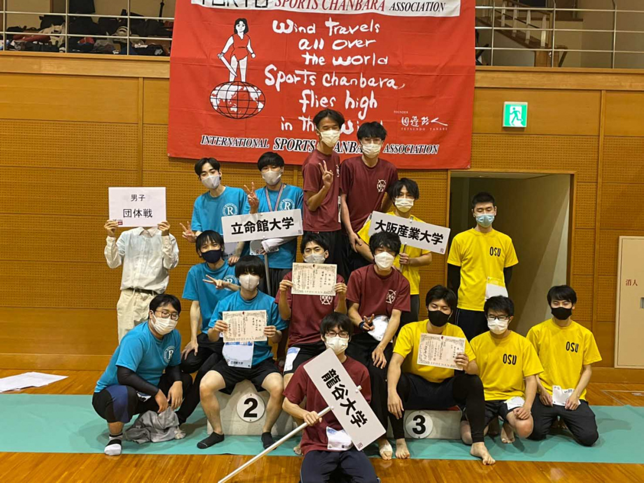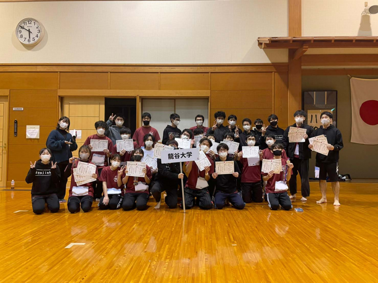 日本スポーツチャンバラ学生連盟主催の第7回近畿学生選手権大会が11月14日(日)滋賀県の草津市立武道館にて開催され、龍谷大学一般同好会スポーツチャンバラサークル龍刃会が、男子団体戦、女子団体戦ともに優勝に輝きました。個人戦では新人男子二刀の部と新人男子グランドチャンピオン戦で西谷凪沙(にしたになぎさ・文1回生)さんが優勝、有段基本動作の部と有段両手長剣の部の両方で野中翔(のなかしょう・文3回生)さんが優勝、有級楯長剣の部で上田圭人(うえだけいと・経営3回生)さんが優勝、そのほかにも準優勝など見事多くの賞を獲得しました。おめでとうございます。