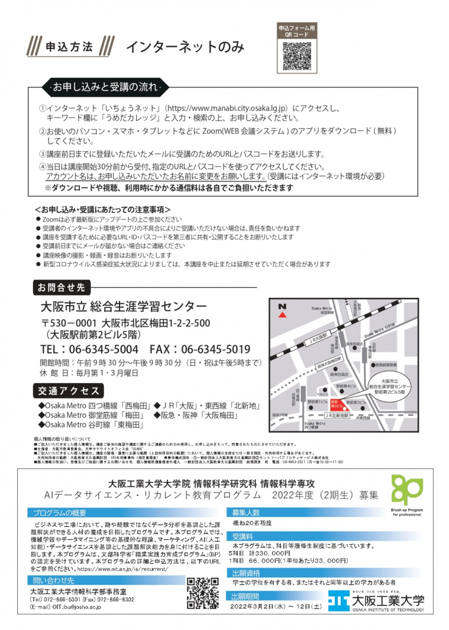 2021年度第2回は、大阪工業大学から講座提供があり、ライブ配信によるオンライン講座で開催いたします。
