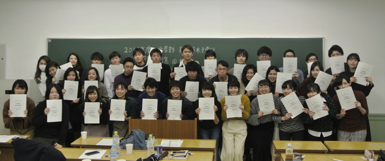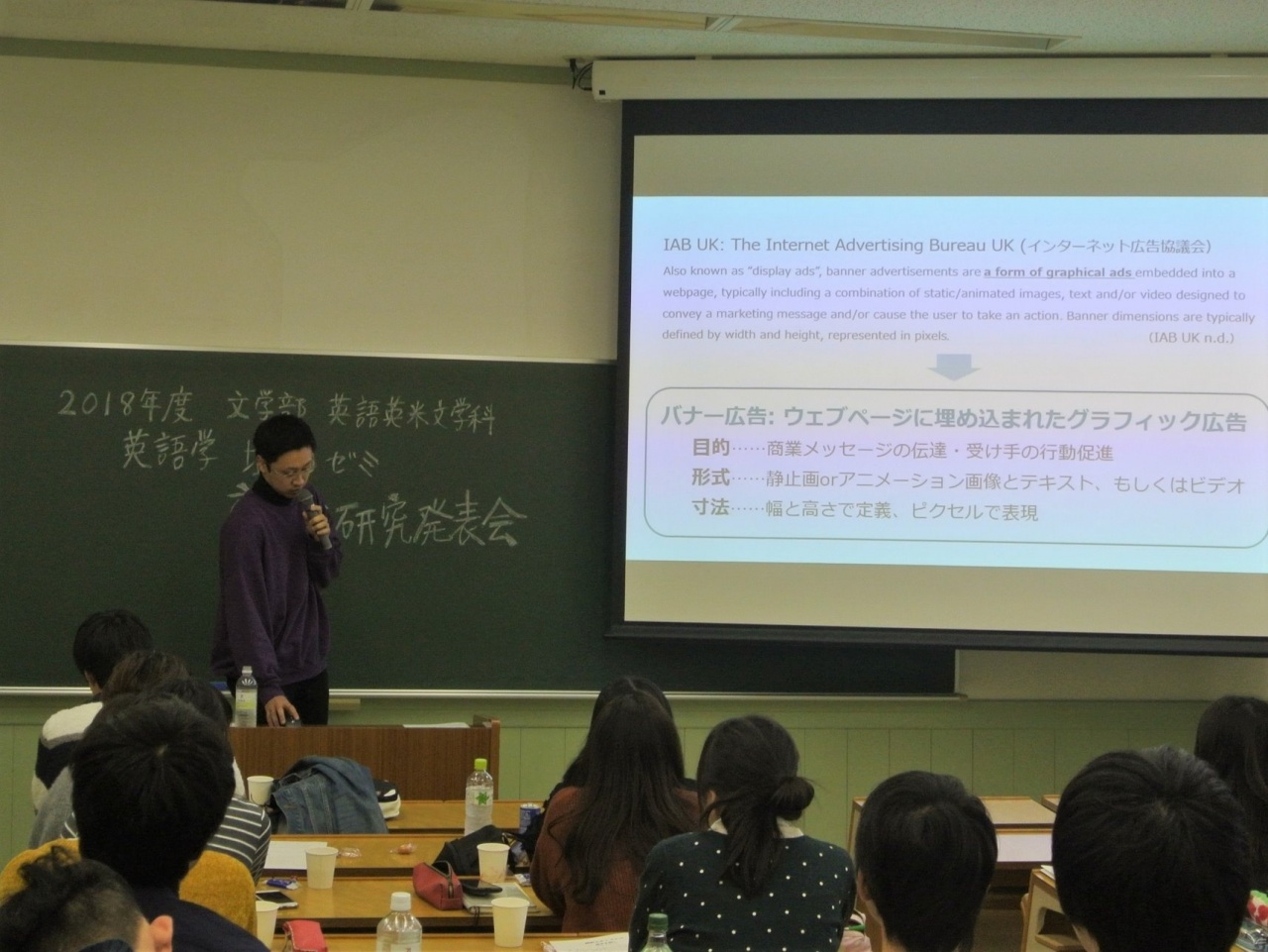 文学部 英語英米文学科 英語学 塩田ゼミでは毎年恒例の3・4回生合同卒業論文研究発表会を開催しました。