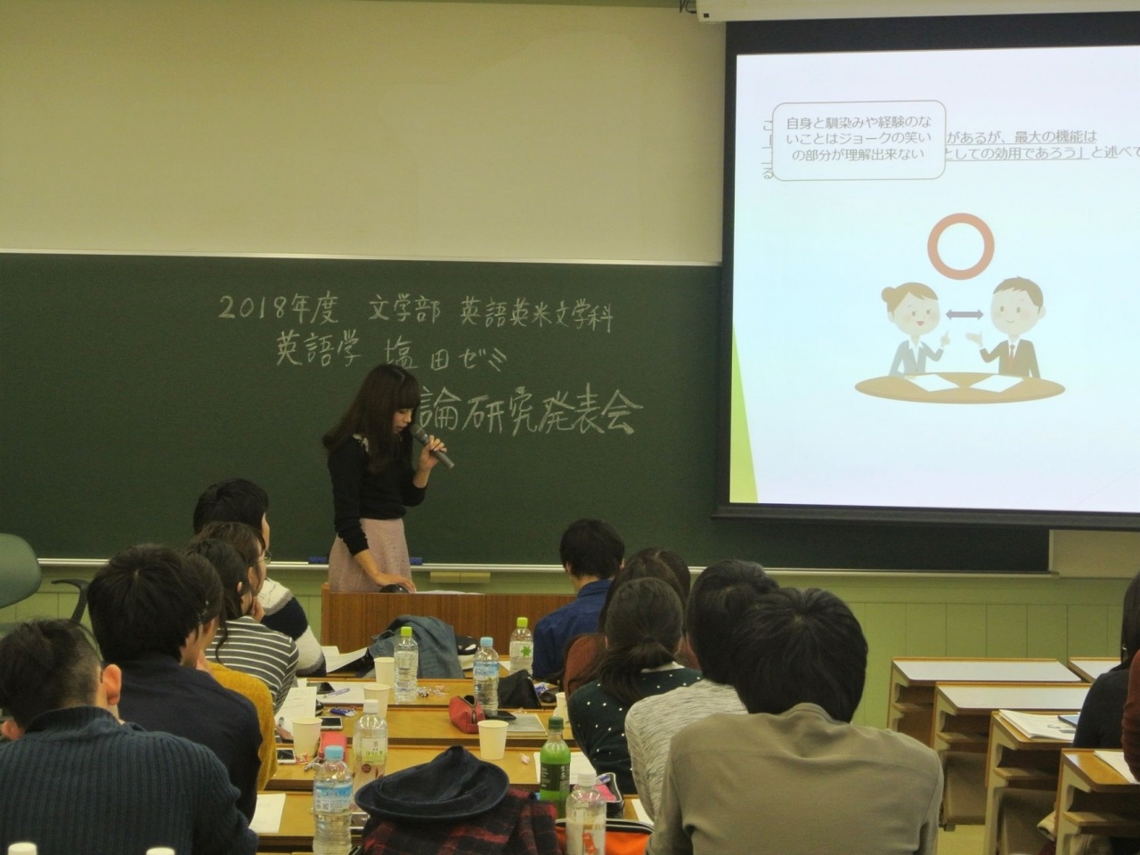 【学科紹介】英語学卒論研究発表会を開催しました。(英語英米文学科・塩田英子先生)【文学部】