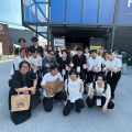 来場した学生と説明する福島センター長